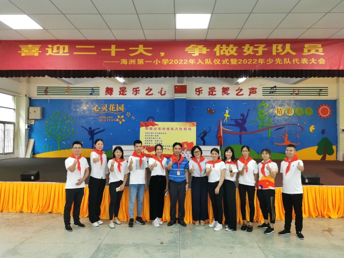 最后,海洲第一小學少先隊輔導員鄧苑甜主任向新隊員們送上了深情的寄語,向新隊員們表示衷心的祝賀,并希望同學們能努力學習,勤于鍛煉,不畏艱難,茁壯成長,為紅領(lǐng)巾增添光彩。