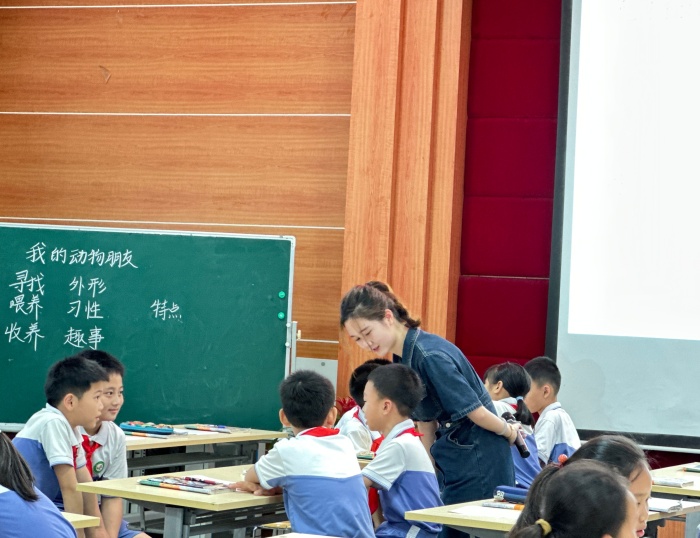 海洲第一小學(xué)甘泳琪老師在團(tuán)隊(duì)的共同研磨下,展示四年級(jí)上冊(cè)第四單元習(xí)作課例《我的動(dòng)物朋友》。甘泳琪老師在習(xí)作教學(xué)中先以單元習(xí)作例文切入,創(chuàng)設(shè)了三個(gè)情境,引導(dǎo)學(xué)生留心觀察小動(dòng)物的外形、習(xí)性、趣事等特點(diǎn),對(duì)典型事例進(jìn)行具體的描寫。本次執(zhí)教中,甘泳琪老師課堂教學(xué)中最大的亮點(diǎn)在于,當(dāng)學(xué)生介紹情境中的動(dòng)物朋友時(shí),及時(shí)捕捉學(xué)生語(yǔ)言描述的生動(dòng)性,強(qiáng)化學(xué)生的情感體現(xiàn),從語(yǔ)言描述中捕捉體現(xiàn)親密關(guān)系、朋友情誼的詞或句,為后面的動(dòng)筆做好鋪墊。