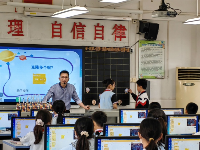 本次教研活動(dòng)以“重信息素養(yǎng),育創(chuàng)新意識(shí)”為主題,研討活動(dòng)分課例展示、評(píng)課議課和主題研討三個(gè)環(huán)節(jié)。第一環(huán)節(jié)中,海洲第一小學(xué)的郭偉斌老師和新徽學(xué)校的陳微玲老師都為教研組成員展示了《飛船游太空》這一課例。同課卻不同構(gòu),郭老師注重學(xué)生整體思維的提高,在教學(xué)中創(chuàng)設(shè)了三個(gè)活動(dòng),從“飛船”到“流星現(xiàn)太空”,再到“流星雨下落”,學(xué)生在三個(gè)活動(dòng)中互幫互助,協(xié)作學(xué)習(xí),在問題導(dǎo)向引導(dǎo)中逐步掌握技能。陳老師則注重信息技術(shù)理論的培養(yǎng),通過引入微課與學(xué)習(xí)單,極大豐富了課堂的趣味性與生動(dòng)性,學(xué)生在老師的引導(dǎo)下逐步掌握每一個(gè)操作技能。兩位老師精彩的課堂可謂是各具特色,為現(xiàn)場(chǎng)觀摩老師留下了深刻印象。
