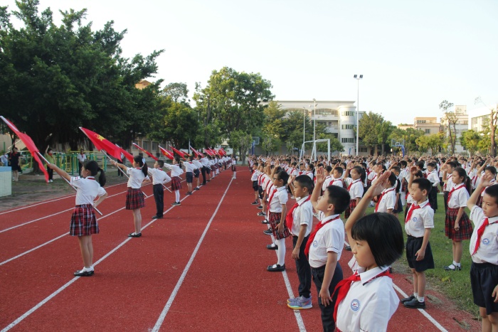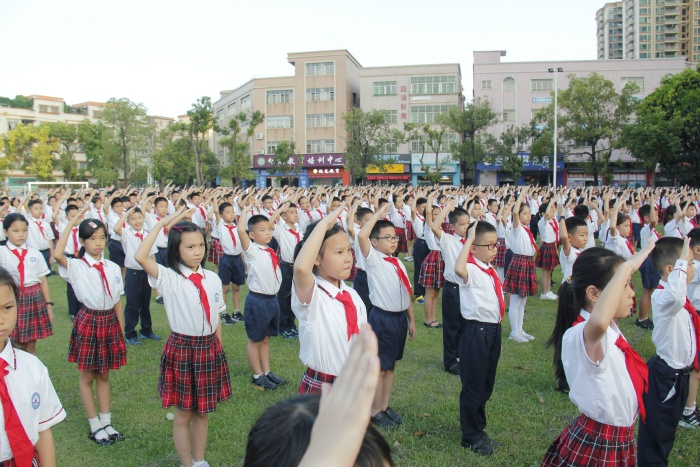 10月11日下午,全體輔導(dǎo)員和少先隊(duì)員集中在升旗臺(tái)前舉行了“請(qǐng)黨放心,強(qiáng)國(guó)有我——喜迎中山市第八次少代會(huì)鎮(zhèn)南小學(xué)少先隊(duì)微儀式”活動(dòng)。