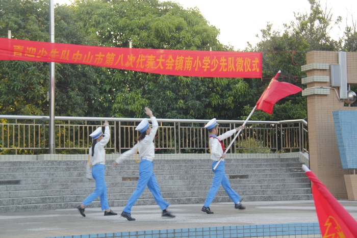 “我們是共產(chǎn)主義接班人……”嘹亮而熟悉的旋律,飄揚(yáng)在鎮(zhèn)南小學(xué)的上空,少先隊(duì)員們發(fā)自?xún)?nèi)心的自豪感油然而生。《中國(guó)少年先鋒隊(duì)隊(duì)歌》唱出了隊(duì)員們的心聲,也唱出了隊(duì)員們的決心。