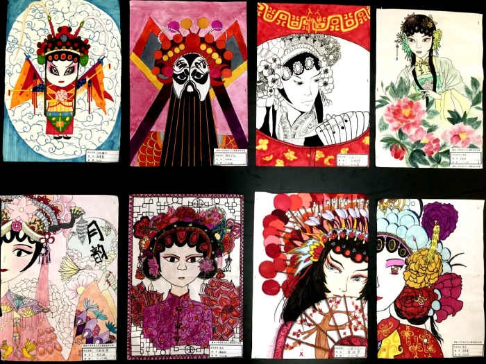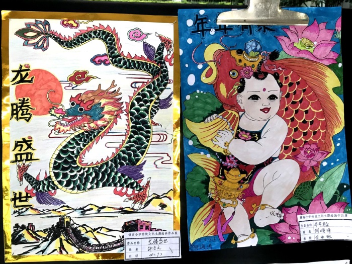 學(xué)生們?cè)诶蠋煹闹笇?dǎo)下,用心、用情繪畫出許多有質(zhì)量的、精美的作品。每個(gè)班選出最優(yōu)秀的5張作品進(jìn)入年級(jí)評(píng)審,美術(shù)科組老師根據(jù)畫面的主題、創(chuàng)意、表現(xiàn)、色彩、構(gòu)圖等方面評(píng)選出最佳創(chuàng)意獎(jiǎng)和最佳表現(xiàn)獎(jiǎng)。低年級(jí)孩子大力挖掘傳統(tǒng)節(jié)日的元素,畫面表現(xiàn)了中國(guó)傳統(tǒng)節(jié)日的熱鬧情境和豐富的文化內(nèi)涵;中年級(jí)的年畫表現(xiàn)上有傳統(tǒng)元素的臨摹,同時(shí)又有現(xiàn)代元素創(chuàng)新結(jié)合,讓人耳目一新;高年級(jí)戲曲作品中,孩子們將戲曲人物中的生的文質(zhì)彬彬、花旦的優(yōu)雅、凈的威武、丑的詼諧表現(xiàn)得淋漓盡致,形象生動(dòng),讓大家感受到了戲曲藝術(shù)的魅力。