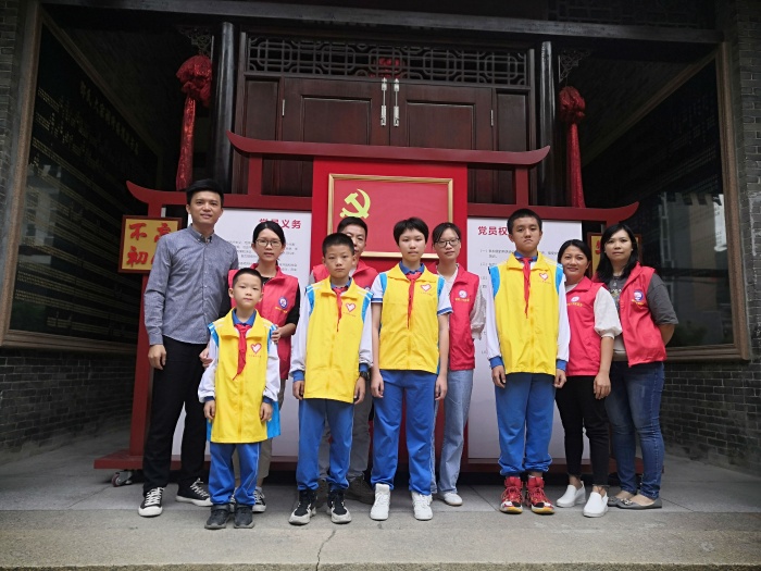 研學(xué)第一站,在鎮(zhèn)南小學(xué)親子義工服務(wù)隊的陪同下,學(xué)生來到古四鄧氏宗祠,參加了由共青團(tuán)中山市委員會、中山市少工委主辦,共青團(tuán)古鎮(zhèn)鎮(zhèn)委員會、古鎮(zhèn)鎮(zhèn)少工委承辦的《弘揚紅色文化,傳承紅色基因》活動。通過宣講員的講解,少先隊員了解到鄧氏大宗祠興建于清朝光緒年間。鄧氏大宗祠曾經(jīng)是共產(chǎn)黨地下組織的革命根據(jù)地,并在此升起古鎮(zhèn)鎮(zhèn)的第一面五星紅旗,同時也是抗日戰(zhàn)爭時期廣東省青年抗日先鋒隊中山縣隊的駐足點、解放小欖的集結(jié)地。