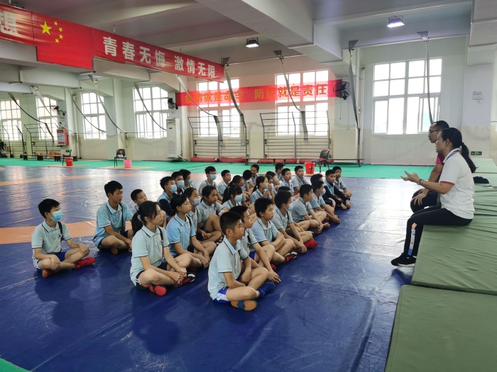 比賽期間,中山市沙溪鎮(zhèn)黨政綜合辦主任貝鵬程、沙溪鎮(zhèn)宣傳辦副主任林曉穎和沙溪鎮(zhèn)教育和體育事務(wù)中心主任寧云志出席比賽現(xiàn)場(chǎng),為港園小學(xué)摔跤健兒加油鼓勁。