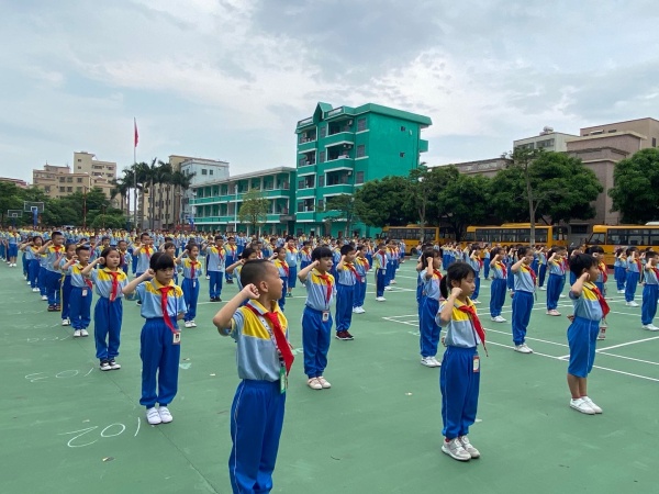 為增強(qiáng)廣大少先隊(duì)員組織意識(shí),明確成長(zhǎng)目標(biāo),培養(yǎng)學(xué)生的主人翁意識(shí),繼承和弘揚(yáng)少先隊(duì)光榮傳統(tǒng),使華文學(xué)子度過一個(gè)快樂而又安全的節(jié)日,5月29日下午,華文學(xué)校德育處組織舉行了華文學(xué)校2020年慶六一活動(dòng)暨新隊(duì)員入隊(duì)儀式。本次活動(dòng)由德育處荀丹老師主持,橫欄鎮(zhèn)財(cái)政分局廖嘉紅局長(zhǎng)、橫欄鎮(zhèn)教育事務(wù)指導(dǎo)中心吳炳炎專干、華文學(xué)校謝春生校長(zhǎng)、肖禮發(fā)副校長(zhǎng)、賈如意副校長(zhǎng)出席了本次活動(dòng)。