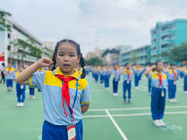 火紅的隊(duì)旗高高飄揚(yáng),指引隊(duì)員們前進(jìn)的方向;鮮紅的紅領(lǐng)巾系滿理想,載著隊(duì)員們揚(yáng)帆遠(yuǎn)航。相信華文學(xué)子在隊(duì)旗的引領(lǐng)下,必定會(huì)堅(jiān)定努力學(xué)習(xí)、勇敢追夢(mèng)、為祖國(guó)的強(qiáng)大作貢獻(xiàn)的決心,在今后的學(xué)習(xí)和生活中有更大的進(jìn)步!