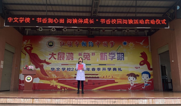 讀書使人明理,讀書使人善辯,讀書使人高尚,讀書使人幸福。為深入貫徹落實(shí)習(xí)近平總書記重要講話精神,牢牢把握社會(huì)主義先進(jìn)文化的前進(jìn)方向,進(jìn)一步推進(jìn)書香校園建設(shè),營(yíng)造良好的校園閱讀氛圍,扎實(shí)推進(jìn)新課程標(biāo)準(zhǔn)對(duì)閱讀的要求,讓書籍走進(jìn)師生的心靈,3月20日上午,華文學(xué)校舉行了以“書香潤(rùn)心田 閱讀伴成長(zhǎng)”為主題的書香校園閱讀啟動(dòng)儀式。