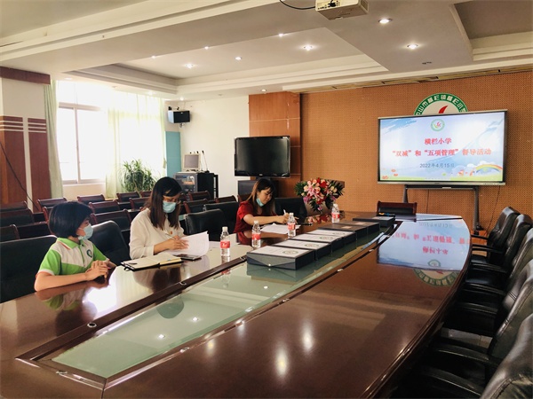 2022年4月15日下午,橫欄鎮(zhèn)教育和體育事務(wù)中心專項(xiàng)督查組到橫欄小學(xué)開展“雙減”“五項(xiàng)管理”和校園疫情防控工作專項(xiàng)督導(dǎo)。橫欄小學(xué)校長游學(xué)偉和部分行政領(lǐng)導(dǎo)陪同督查。橫欄小學(xué)副校長湯惠儀、教導(dǎo)處主任黃美清和教導(dǎo)處副主任高山代表學(xué)校對(duì)視導(dǎo)組概要介紹了學(xué)校的基本情況,重點(diǎn)闡釋了“疫情防控”“五項(xiàng)管理”和“雙減”政策在學(xué)校落地情況。