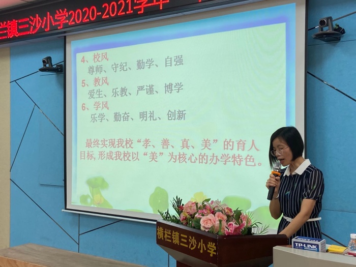 最后,家長們和老師們集中在一樓會議室,三沙小學(xué)馮紅燕校長上臺發(fā)言。馮校長在發(fā)言中歡迎孩子們和家長們的到來,為大家介紹了學(xué)校的基本情況和辦學(xué)理念——“以美養(yǎng)德、以美啟智、以美健體、以美引善”,提倡“以美育人”,就是用美的校園、美的課程、美的活動培育全面發(fā)展的孩子們。馮校長還介紹了三沙小學(xué)在2019年所取得的諸多優(yōu)秀成績,回顧了家校合作的各項活動,并衷心感謝家長們對學(xué)校工作的支持,希望家校之間在新的學(xué)期要加強聯(lián)系,為孩子們的健康成長共同努力!