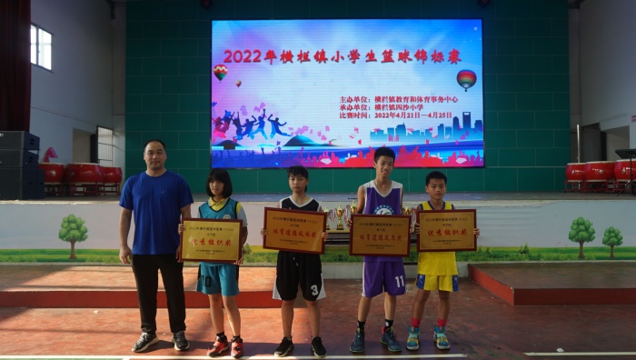 2022年4月25日下午,為期四天的橫欄鎮(zhèn)2022年小學(xué)生籃球錦標(biāo)賽在四沙小學(xué)完美落幕。橫欄小學(xué)、第二小學(xué)和四沙小學(xué)包攬了男女子組前三名,其中四沙小學(xué)男、女子組勇奪雙冠軍。