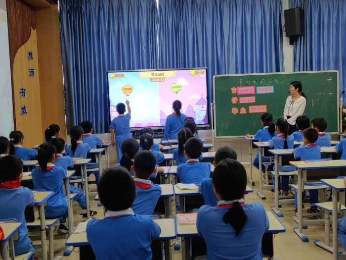 本次比賽設(shè)低、高兩個年段,有8位班主任分兩天進行了角逐。參賽的班主任們分別圍繞“文明”“富強”兩個主題精心設(shè)計各式各樣的體驗活動,從小處入手、由淺入深地詮釋了“文明”“富強”的基本內(nèi)涵,采取小組討論、希沃白板小游戲等形式,讓學(xué)生們暢談感受,充分激發(fā)了學(xué)生的積極性,使得班會主題逐步深入人心,大大增強了主題班會的教育效果。
