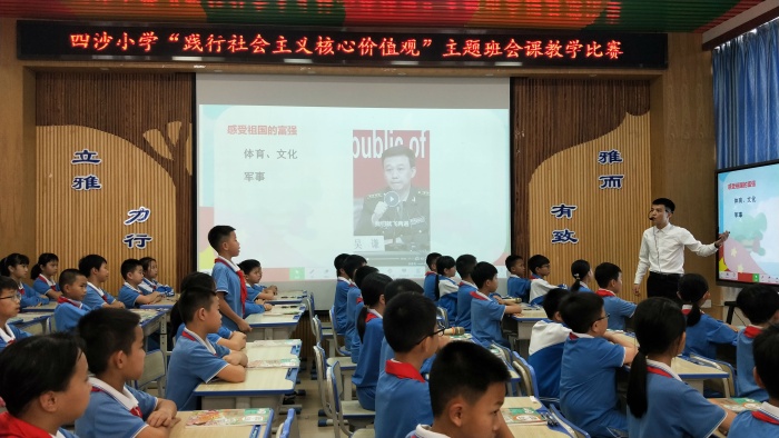 為了深入貫徹習(xí)近平總書記“堅持把立德樹人作為中心環(huán)節(jié),把思想政治工作貫穿教育教學(xué)全過程,實現(xiàn)全程育人、全方位育人”思想,進一步創(chuàng)新主題班會模式,發(fā)揮主題班會育人作用,增強主題班會實效性,促進主題班會序列化深入研究,3月17日、18日,橫欄鎮(zhèn)四沙小學(xué)開展“踐行社會主義核心價值觀”主題班會課教學(xué)比賽活動。分別榮獲低、高年段的一等獎的嚴麗萍老師和司徒嘉穎老師將代表學(xué)校參加橫欄鎮(zhèn)“踐行社會主義核心價值觀”主題班會課教學(xué)比賽。