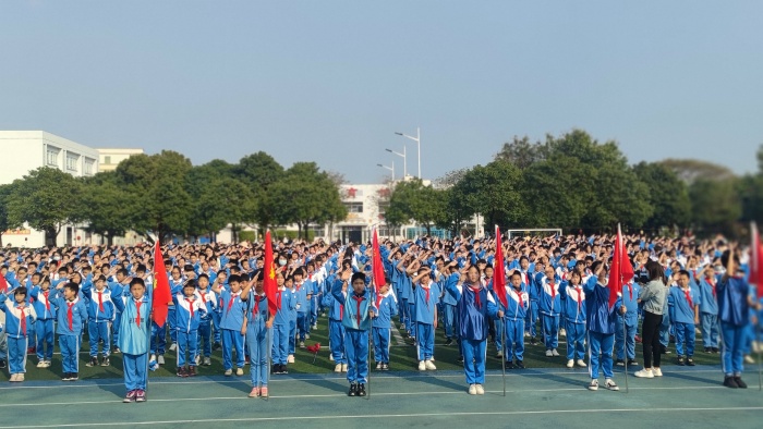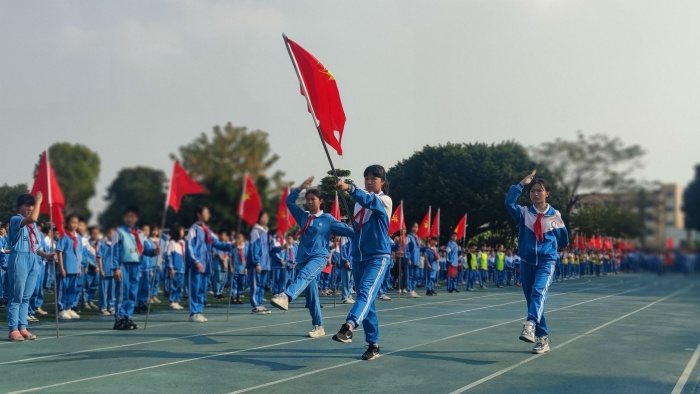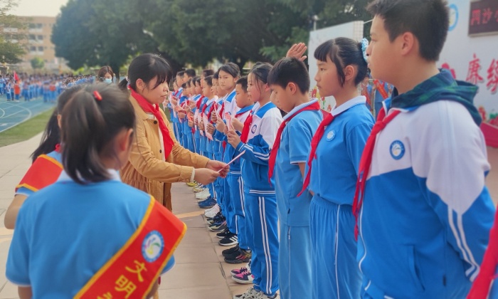 最后,大隊(duì)輔導(dǎo)員梁佩珊宣布:四沙小學(xué)2022年“學(xué)雷鋒 揚(yáng)雅風(fēng) 踐雅行”學(xué)雷鋒活動(dòng)月正式啟動(dòng)。在大隊(duì)輔導(dǎo)員的帶領(lǐng)下,隊(duì)員們?cè)趪?guó)旗下宣誓:“學(xué)習(xí)雷鋒,從我做起,從現(xiàn)在做起,從身邊的每一件小事做起,以實(shí)際行動(dòng)詮釋雷鋒精神!”整齊響亮的宣誓聲在校園上空回蕩。