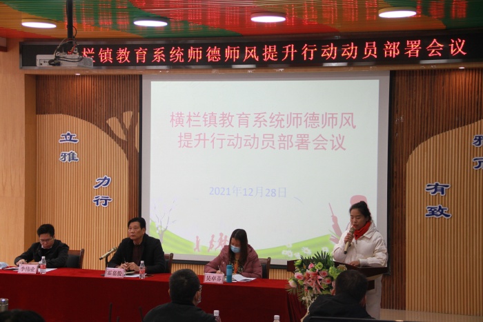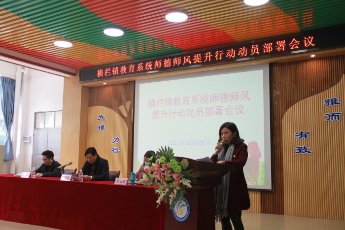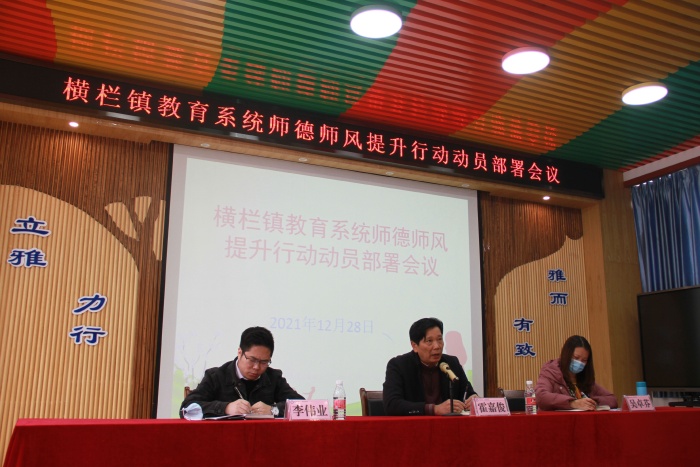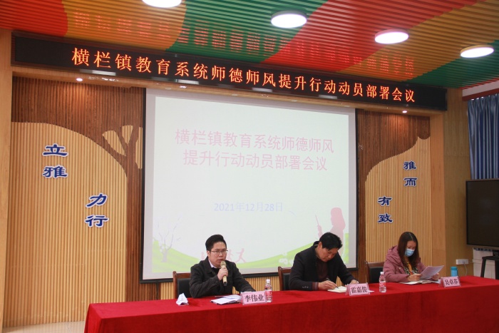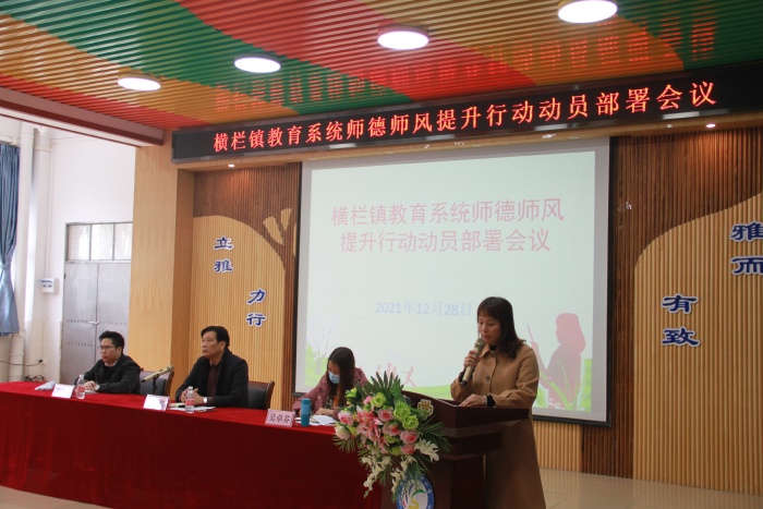 為貫徹落實(shí)《教育部等七部門印發(fā)<關(guān)于加強(qiáng)和改進(jìn)新時(shí)代 師德師風(fēng)建設(shè)的意見>的通知》(教師[2019]10號(hào))、《中山市教育和體育局關(guān)于印發(fā)<中山市師德師風(fēng)建設(shè)三年行動(dòng)計(jì)劃(2021-2023)>的通知》(中教體通[2021]168號(hào))等的文件精神,進(jìn)一步規(guī)范橫欄鎮(zhèn)中小學(xué)(幼兒園)教師職業(yè)行為,提高教師思想政治素質(zhì)和職業(yè)道德水平,促進(jìn)學(xué)生健康全面發(fā)展,2021年12月28日上午,橫欄鎮(zhèn)教育系統(tǒng)組織中小學(xué)校長和幼兒園園長在四沙小學(xué)召開了師德師風(fēng)提升行動(dòng)動(dòng)員部署會(huì)議。橫欄鎮(zhèn)教育系統(tǒng)黨委書記、橫欄鎮(zhèn)教育和體育事務(wù)中心主任霍嘉俊主持會(huì)議并對師德師風(fēng)建設(shè)提出了要求。橫欄鎮(zhèn)教育和體育事務(wù)中心政工專干李偉業(yè)解讀了《橫欄鎮(zhèn)教育系統(tǒng)師德師風(fēng)提升行動(dòng)方案》。中小學(xué)校校長和幼兒園園長代表作了表態(tài)發(fā)言。橫欄鎮(zhèn)教育和體育事務(wù)中心黨支部書記、橫欄鎮(zhèn)教育和體育事務(wù)中心副主任吳卓芬出席了會(huì)議。