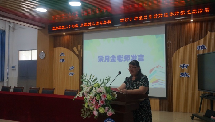 梁月金老師的分享充滿了感激、眷戀和期望。梁月金老師感激黨和人民給予了她政治生命和教書育人的崇高使命,使她在自己熱愛的教育工作崗位上不懈奮斗了37年,為人民的教育事業(yè)作出了自己應(yīng)有的貢獻(xiàn);眷戀自己朝夕相處的同事、學(xué)生,眷戀四沙小學(xué)這個(gè)團(tuán)結(jié)、和諧的大家庭;梁月金老師希望同學(xué)們?yōu)榱藸N爛如錦的前程、為了完美如歌的生命,要抓緊一切時(shí)間,在老師的教育引導(dǎo)下,認(rèn)真學(xué)習(xí),刻苦學(xué)習(xí),善于學(xué)習(xí),用優(yōu)異的成績(jī)報(bào)答父母,報(bào)答老師,報(bào)答學(xué)校,報(bào)答偉大的黨和祖國(guó)。