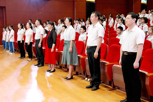 緊接著,少先隊(duì)大隊(duì)輔導(dǎo)員朱冕主任做了“迎接少代會(huì) 爭(zhēng)做好隊(duì)員”主題講話,和隊(duì)員們分享了中共中央總書(shū)記、國(guó)家主席、中央軍委主席習(xí)近平對(duì)全國(guó)少先隊(duì)員的寄語(yǔ)。在寄語(yǔ)中,習(xí)近平爺爺首先代表黨中央,向大家致以節(jié)日的祝賀,希望少年兒童鍵康快樂(lè)成長(zhǎng)。在全國(guó)人民萬(wàn)眾一心抗擊新冠肺炎疫情的斗爭(zhēng)中,廣大少年兒童不僅親眼目睹了中國(guó)人民眾志成城、迎難而上的偉大壯舉,而且聽(tīng)從黨和政府號(hào)召、以實(shí)際行動(dòng)支持抗疫斗爭(zhēng),展現(xiàn)了我國(guó)少年兒童的良好精神風(fēng)貌;習(xí)爺爺還強(qiáng)調(diào),少年強(qiáng)則國(guó)強(qiáng),作為當(dāng)代中國(guó)少年兒童的我們,既是實(shí)現(xiàn)第一個(gè)百年奮斗目標(biāo)的經(jīng)歷者、見(jiàn)證者,更是實(shí)現(xiàn)第二個(gè)百年奮斗目標(biāo)、建設(shè)社會(huì)主義現(xiàn)代化強(qiáng)國(guó)的生力軍,更應(yīng)該刻苦學(xué)習(xí)知識(shí),堅(jiān)定理想信念,磨煉堅(jiān)強(qiáng)意志,鍛煉強(qiáng)健體魄,為實(shí)現(xiàn)偉大的中國(guó)夢(mèng)時(shí)刻準(zhǔn)備著。接下來(lái),全體師生共同唱響少先隊(duì)隊(duì)歌《我們是共產(chǎn)主義接班人》,以歌明志,牢記習(xí)爺爺?shù)钠谕?/p>