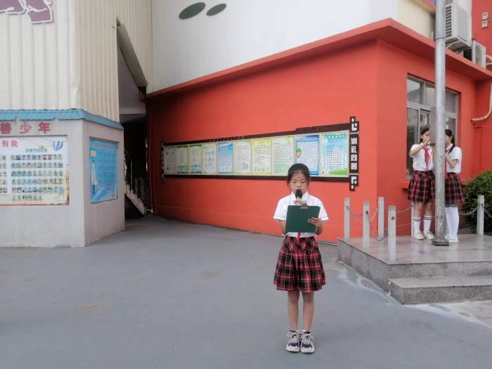 6月27日上午,四(4)班黃曉雯同學(xué)在國旗下,向全體師生發(fā)出了“從自身做起,共同抵制毒品”倡議。
