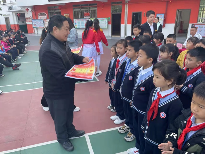 少先隊(duì)大隊(duì)輔導(dǎo)員黃雪梅給獲得“文明班集體”“學(xué)習(xí)強(qiáng)國(guó)優(yōu)秀組織獎(jiǎng)”的班級(jí)頒發(fā)了獎(jiǎng)狀。同時(shí)教務(wù)處對(duì)2021-2022年秋季學(xué)期獲得“學(xué)習(xí)之星”學(xué)生進(jìn)行了表彰,頒發(fā)獎(jiǎng)狀與獎(jiǎng)品。一時(shí)間掌聲雷動(dòng),氣氛熱烈。