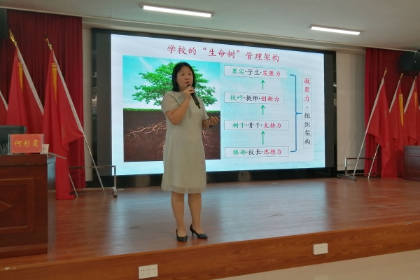 在家門口就能共享前沿教育理念。2020年6月17日早上,黃圃中學何彩霞校長到永善縣中山博愛學校舉行名校長論壇。中山博愛學校主要由中山市政府牽頭出資捐建。在博愛學校,何校長給全縣中小學的正副校長帶來了一場頭腦風暴式的講座:《尋找學??茖W發(fā)展之路—-以一所薄弱初中成功轉型為例》,讓校長們沉浸其中。何校長是廣東省骨干校長,廣東省中小學教師信息技術應用能力提升工程2.0培訓專家,中山市責任督學,中山市先進教育工作者。她以一所農(nóng)村中學——黃圃鎮(zhèn)中學為研究對象,拼搏9年,研究9年。鎮(zhèn)中從合并之初薄弱、煥散、滯后到如今優(yōu)質、凝聚、先進,背后有著深刻的原因和寶貴的辦學經(jīng)驗。何校長真誠地和校長們分享鎮(zhèn)中的歷史、現(xiàn)狀和未來。講座從校長的“六種專業(yè)職責”開始,到建立學校的“生命樹”管理架構,明確提升學校核心競爭力的途徑,到思考“怎樣培養(yǎng)人”的核心問題,從建立起“潤澤生命”的文化體系、“潤澤課程”的教育體系,到邁出了“智慧課堂”的步子,講座中所涉及到的辦學效果都用實例、數(shù)據(jù)說話,讓人信服,尤其是在何校長分享行之有效“教研訓三位一體”教師發(fā)展模式,讓與會者獲益良多、感慨頗深。在講座現(xiàn)場,何校長還與在座校長們現(xiàn)場互動,提問、思考、反饋、討論,學習氛圍熱烈。他山之石,必能攻玉。何校長的講座有大愛、大情懷、大格局,她帶來的鎮(zhèn)中經(jīng)驗,讓所有的研修人員如沐春風,醍醐灌頂。