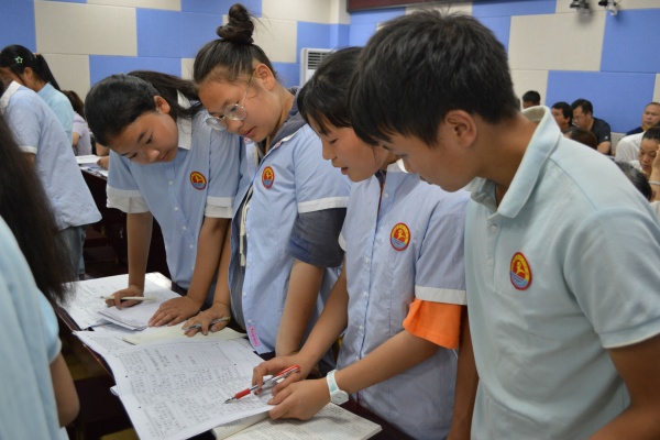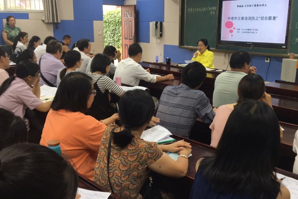 親臨現(xiàn)場感受名師風采。2020年6月15日下午,黃圃鎮(zhèn)中學選派中學語文高級教師、黃圃鎮(zhèn)語文學科帶頭人、名班主任工作室主持人李麗老師赴幫扶的永善三中上縣級示范課《中考作文復習專題課之“修改潤色”》,永善縣全縣近50名骨干教師參加教研活動。課前,李老師為永善三中初三168班57個孩子批改了模擬考試作文,并順勢摸清了學情,精準地設計了寫作評講課。課中,她從“切合題意”角度出發(fā),從“言”和“意”兩個角度,對孩子作文的優(yōu)點不吝贊美,對孩子寫作的缺點耐心啟發(fā),并創(chuàng)編公式,教會孩子寫作思路和方法,并通過小組合作活動,現(xiàn)場展示學習所得。永善三中的同學們非常喜歡李老師的課,課堂氣氛熱烈,師生互動積極,教學效果非常好。課后評課環(huán)節(jié)聽課老師指出:對于農(nóng)村孩子來說,作文難教、難寫、難學是常態(tài),該作文復習課深入淺出,既有方法,也有范例,給他們的課改帶來一場及時雨。