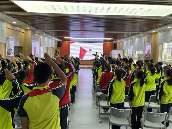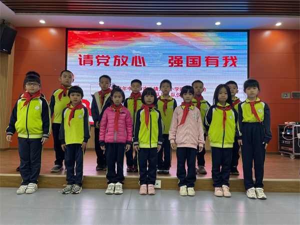 最后,江婷婷老師帶領(lǐng)大家呼號“準(zhǔn)備著,為共產(chǎn)主義事業(yè),貢獻(xiàn)一切力量!”“時(shí)刻準(zhǔn)備著!”儀式感滿滿的入隊(duì)儀式在新隊(duì)員心中種下了一棵紅色的種子,將帶領(lǐng)著新隊(duì)員們不斷前進(jìn),勇敢拼搏。