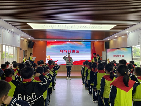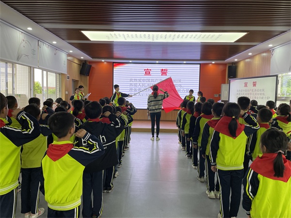 剛佩戴上紅領(lǐng)巾的新隊(duì)員們個(gè)個(gè)精神抖擻,在大隊(duì)輔導(dǎo)員的帶領(lǐng)下,他們高高舉起右拳,莊嚴(yán)宣誓:“我熱愛中國共產(chǎn)黨,熱愛祖國,熱愛人民,好好學(xué)習(xí),好好鍛煉,準(zhǔn)備著,為共產(chǎn)主義事業(yè)貢獻(xiàn)力量?!蓖瑫r(shí),大隊(duì)輔導(dǎo)員江婷婷老師為新隊(duì)員送上寄語:“希望你們以一名少先隊(duì)員的標(biāo)準(zhǔn)嚴(yán)格要求自己,主動向身邊的榜樣學(xué)習(xí),向老隊(duì)員學(xué)習(xí),學(xué)習(xí)他們的優(yōu)秀品質(zhì),自律、自學(xué)、自立,做一名全面發(fā)展的優(yōu)秀少先隊(duì)員?!?/p>