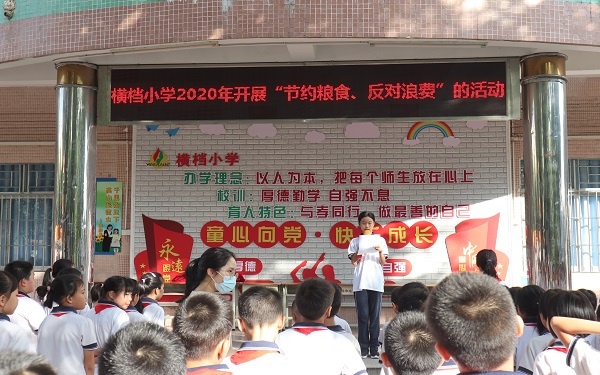 為貫徹落實(shí)習(xí)近平總書(shū)記關(guān)于制止餐飲浪費(fèi)行為的重要指示精神,培養(yǎng)學(xué)生良好的健康飲食習(xí)慣,教育學(xué)生厲行節(jié)約、反對(duì)浪費(fèi),在校園中營(yíng)造浪費(fèi)可恥、節(jié)約光榮的氛圍,橫檔小學(xué)舉辦了2020年“節(jié)約糧食,反對(duì)浪費(fèi)”活動(dòng)。