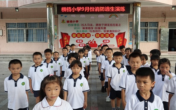 校園安全關(guān)系著學(xué)校每一位師生,為了構(gòu)建和諧、平安校園,大力營造“關(guān)注安全,關(guān)愛生命”的濃厚氛圍,使師生了解防震、疏散、消防等應(yīng)急防控知識,在面對危險發(fā)生時能正確采取防護(hù)措施和方法,2020年9月21日上午,橫檔小學(xué)舉行了本學(xué)期第一次常規(guī)消防逃生演練。