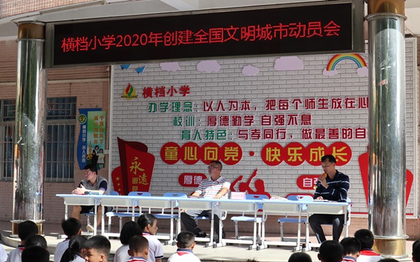 今年是中山創(chuàng)建全國文明城市的關(guān)鍵之年,為奮力實現(xiàn)全國文明城市“六連冠”的目標(biāo),7月17日上午八點正,橫檔小學(xué)集合全體師生在教學(xué)樓舉行動員會,向大家發(fā)出以下倡議: