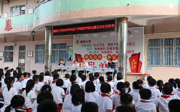 7月17日早上八點正,陽光燦爛,橫檔小學(xué)集合全體師生在教學(xué)樓前舉行2019學(xué)年下學(xué)期散學(xué)典禮暨法治安全教育。