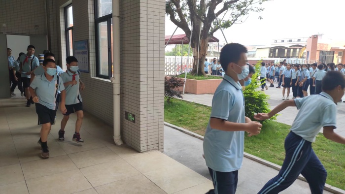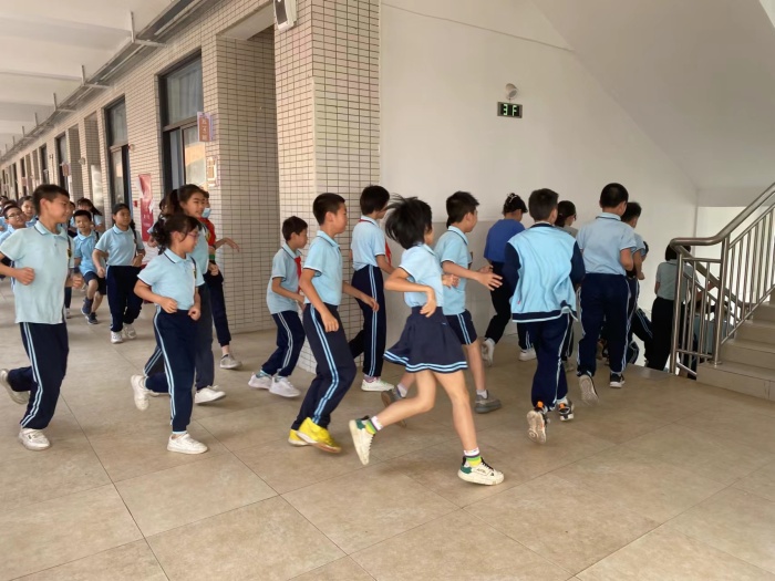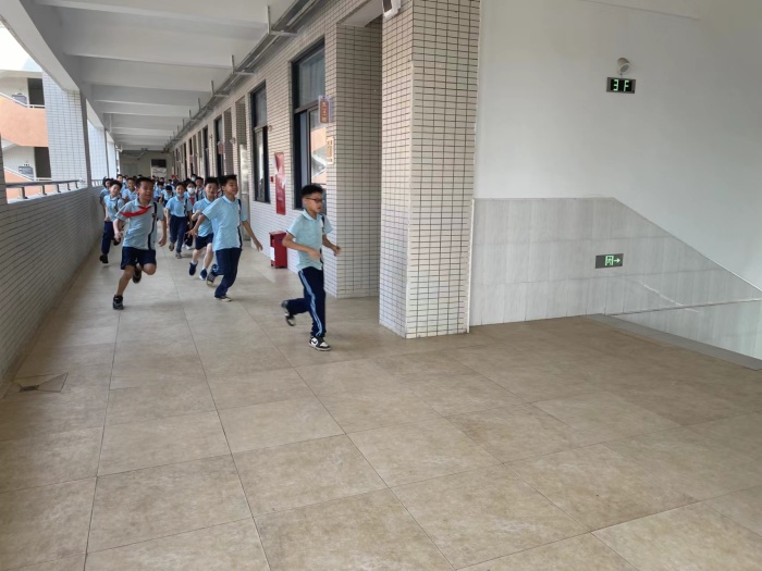 課間時,全校師生聽到警報一響,就迅速而有序地從各個指定的通道進行逃生。同時,樓內(nèi)疏散人員也嚴格按照預先的演習方案疏散學生,保證在樓內(nèi)學生的安全,以免慌亂中出現(xiàn)擁擠或者踩傷學生現(xiàn)象。