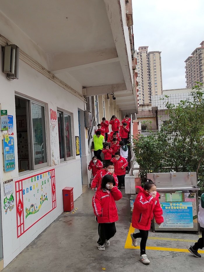 上午8:00分,根據(jù)學(xué)校安全疏散演練活動(dòng)方案安排,學(xué)校廣播發(fā)出通知:“現(xiàn)在發(fā)生火災(zāi),請(qǐng)全體師生緊急疏散”,同時(shí)拉響了警報(bào)聲,班主任或上課教師立即停止授課,學(xué)生在老師帶領(lǐng)下有秩序從樓梯向下撤離,并按照《培紅小學(xué)緊急疏散示意圖》預(yù)定的疏散路線,迅速撤離到事先指定的地點(diǎn)整隊(duì)。