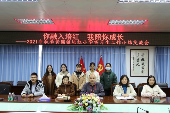 12月29日早上,培紅小學在會議室召開2021年秋季實習生工作小結交流會。梁惠鵬校長、王海君副校長、李寶貞主任、部分指導老師及全體實習生參加了本次會議。