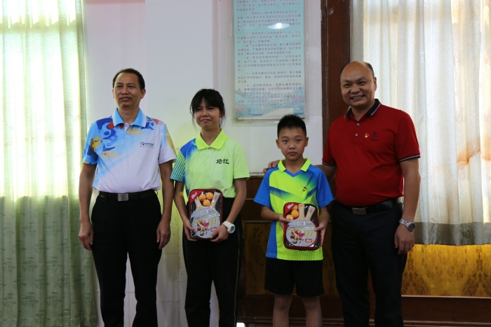 開幕式中舉行了簡潔隆重的捐贈儀式,譚鏡煒副主任代表關(guān)工委向培紅小學(xué)學(xué)生代表贈送乒乓球運(yùn)動器材;陳敬華董事長向培紅小學(xué)捐贈了比賽獎品;梁惠鵬校長代表培紅小學(xué)向關(guān)工委以及駿驅(qū)汽車修配廠回贈紀(jì)念品以表示感謝。