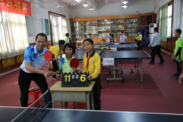 梁惠鵬校長代表學(xué)校向關(guān)工委以及駿驅(qū)汽車修配廠對培紅小學(xué)乒乓球運(yùn)動建設(shè)的支持表示誠摯感謝。譚鏡煒副主任與學(xué)生進(jìn)行了深切交談,交談中譚主任談到自己也是一名乒乓球愛好者并通過引用中山乒乓球代表容國團(tuán)、江嘉良的事跡鼓勵同學(xué)們認(rèn)真訓(xùn)練,向前輩看齊,通過乒乓球運(yùn)動鍛煉身體并努力取得好的運(yùn)動成績。陳敬華董事長宣布黃圃鎮(zhèn)培紅小學(xué)首屆“駿驅(qū)杯”師生乒乓球賽開幕。隨后譚鏡煒副主任、陳敬華董事長、梁惠鵬校長共同為本次比賽進(jìn)行開球儀式,并與學(xué)生代表進(jìn)行了乒乓球運(yùn)動交流。