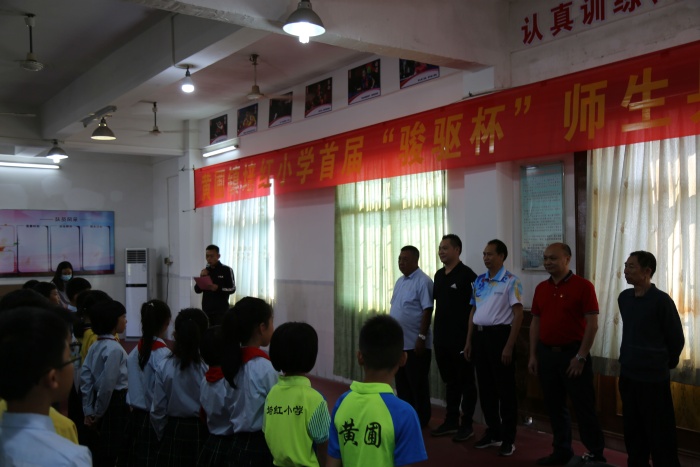 本次比賽得到了黃圃鎮(zhèn)關(guān)工委、黃圃鎮(zhèn)駿驅(qū)汽車修配廠的大力支持。在開幕式上,黃圃鎮(zhèn)關(guān)工委常務(wù)副主任譚鏡煒先生,副主任吳鑒本先生,副主任潘炳泉先生,以及中山市黃圃鎮(zhèn)駿驅(qū)汽車修配廠董事長陳敬華先生一起蒞臨現(xiàn)場為運(yùn)動員加油鼓勁;培紅小學(xué)梁惠鵬校長,盧卓獻(xiàn)副校長,曾向銳主任共同出席開幕式。