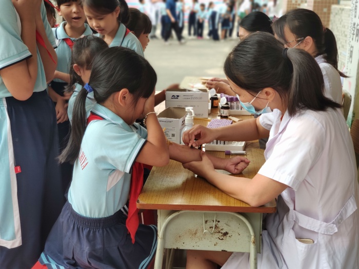 為讓家長和學校全面了解和準確掌握學生的健康狀況,引導學生關注自己的身體健康,做到有疾病“早發(fā)現(xiàn),早預防,早治療”,有效抑制各項傳染病在學校的傳播。2020年9月28日,中山市黃圃鎮(zhèn)人民醫(yī)院體檢科,醫(yī)師團隊共10余人,來到團范小學對全體學生進行了一次全面的健康體檢。