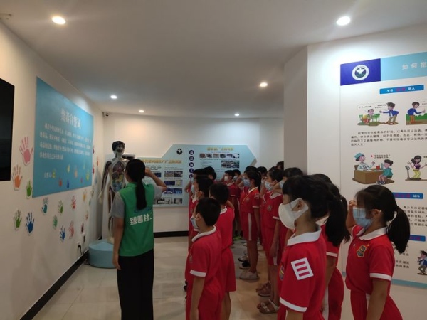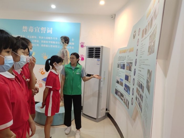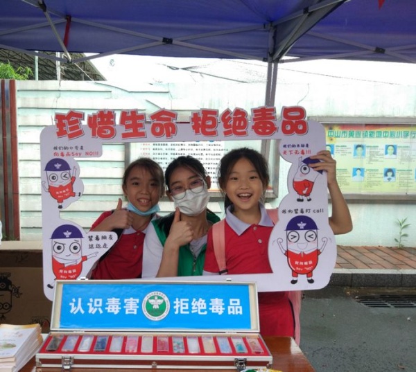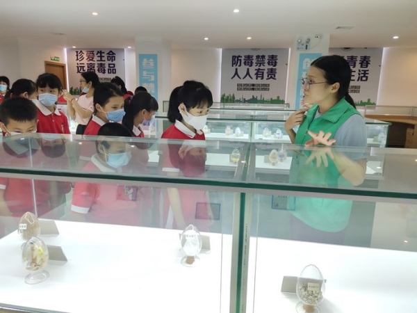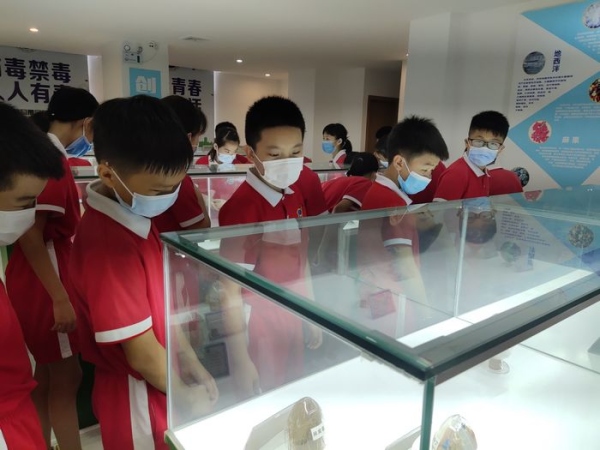 此次活動學(xué)校組織了五年級50名學(xué)生參觀鎮(zhèn)禁毒社工中心,學(xué)校杜晗婷主任、大隊(duì)輔導(dǎo)員杜秋紅等老師帶隊(duì)前往。在參觀過程中,社區(qū)工作人員聲情并茂向同學(xué)們講解了毒品的種類、特征、危害等知識。不僅如此,現(xiàn)場還展示了仿真毒品的模型,利用人體模型向同學(xué)們講解了人體吸食毒品的渠道及其危害。隨后,社區(qū)工作人員帶領(lǐng)全體同學(xué)鄭重宣誓:“我是中華民族的兒女,不忘恥辱,堅決與毒魔作斗爭,珍愛生命,拒絕毒品?!毙那f嚴(yán)而嘹亮,感人至深。儀式結(jié)束后,同學(xué)們移步到社區(qū)的宣傳攤位與禁毒機(jī)器人互動,參與答題,并領(lǐng)取了禁毒宣傳資料、禁毒小禮品。