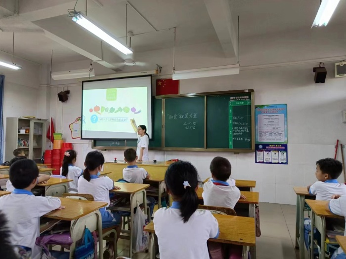 為貫徹落實(shí)《健康中國(guó)行動(dòng)(2019—2030年)》和《國(guó)民營(yíng)養(yǎng)計(jì)劃(2017—2030年)》,積極踐行《中國(guó)居民膳食指南(2022)》,聯(lián)合國(guó)兒童基金會(huì)駐華辦事處同中國(guó)營(yíng)養(yǎng)學(xué)會(huì),共同開(kāi)發(fā)了知“食”就是力量營(yíng)養(yǎng)科普知識(shí),旨在提高兒童青少年?duì)I養(yǎng)健康意識(shí)和水平,傳播營(yíng)養(yǎng)健康知識(shí)和理念,倡導(dǎo)健康的生活方式和管理方式,促進(jìn)兒童青少年健康成長(zhǎng)。2022年5月27日,黃圃鎮(zhèn)新沙小學(xué)開(kāi)展“知‘食’就是力量”主題班會(huì)活動(dòng)。