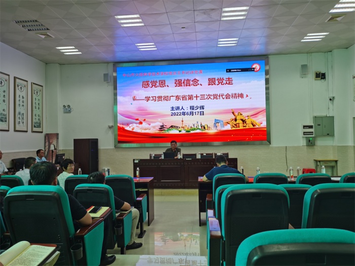 學校黨總支書記、校長程少輝圍繞省第十三次黨代會精神上專題黨課,從省第十三次黨代會的重要意義、李希書記報告的主要內(nèi)容、結(jié)合學校實際狠抓落實等方面,全面系統(tǒng)、深入淺出地解讀省第十三次黨代會精神。他說,省第十三次黨代會是在廣東進入全面建設社會主義現(xiàn)代化國家新征程、豪情滿懷迎接黨的二十大勝利召開的重要時刻召開的一次十分重要的會議。