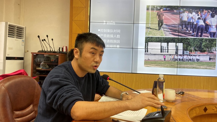 學校德育處袁建副主任則以“班主任平凡而又非凡的一天”為導線,全面詳盡地為全體老師描繪了一幅集早讀、考勤、跑操、防疫、教育平臺、午休、班會、晚修、宿舍管理、體測訓練等各方面工作的“班級管理大合照”,充分肯定了半學期以來班主任在班級工作上的無私奉獻精神,并對全體老師長久以來對學部各項德育工作的支持與配合表示衷心的感謝。