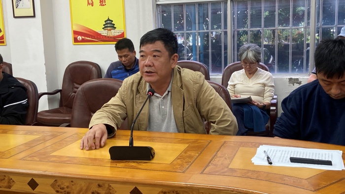 總務處蔡飛翔副主任就目前校園存在地安全隱患及校園疫情防控工作向全體教師做學期中期各項后勤總務工作小結和部署,強調(diào)校園在修在建地設施場地一律禁止使用,校園一切教學、德育活動務必以安全為前提來開展。