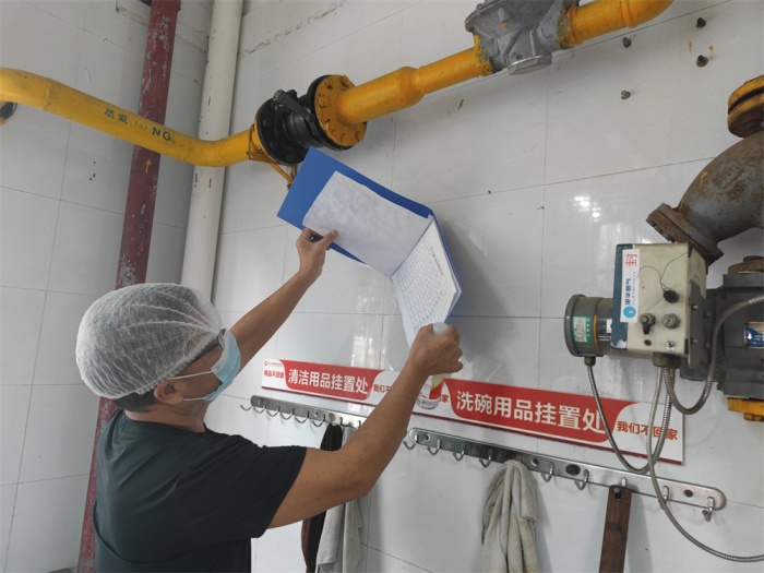 在檢查過程中,檢查組每到一處都認(rèn)真查驗、察看,并聽取食堂負(fù)責(zé)人的詳細(xì)介紹。本次檢查重點包含人員疫情防控、食材靜置、食品安全管理、健康管理、索證索票、清洗消毒、加工制作、環(huán)境衛(wèi)生、飲水管理、采購驗收、入庫出庫及燃?xì)獍踩确矫?。檢查結(jié)果顯示,學(xué)校食堂疫情防控措施落實到位,環(huán)境衛(wèi)生情況整體良好,餐飲具清洗消毒規(guī)范,食品進(jìn)貨查驗索證索票、食品貯存、加工制作、留樣規(guī)范、燃?xì)獍踩确矫娑寄茏龅揭?guī)范自查。