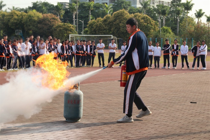 火炬開發(fā)區(qū)消防救援大隊(duì)向各班級(jí)學(xué)生代表進(jìn)行消防安全知識(shí)普及,重點(diǎn)講解了干粉滅火器使用的操作要領(lǐng)以及注意事項(xiàng)。部分同學(xué)還在現(xiàn)場(chǎng)使用干粉滅火器進(jìn)行了滅火體驗(yàn)。