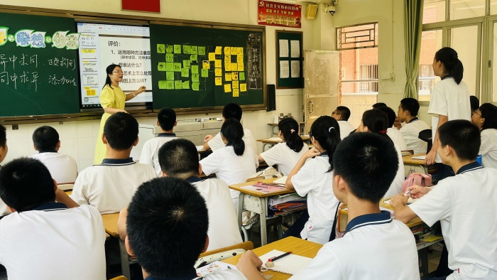 9月22日上午,該鎮(zhèn)在板芙一中開(kāi)展了初中美術(shù)教師“同課異構(gòu)” 美術(shù)教研活動(dòng),內(nèi)容為嶺南版八年級(jí)上冊(cè)美術(shù)《圖形·聯(lián)想·創(chuàng)意》。板芙一中高琴老師以環(huán)保為課堂引線,利用“同中求異、異中求同”的圖形、聯(lián)想方法,做到了以學(xué)生為主體,引導(dǎo)學(xué)生創(chuàng)作出許多有創(chuàng)意的宣傳環(huán)保主題徽章、書(shū)簽、扇子。板芙中學(xué)張翠婷老師的美術(shù)課堂充分體現(xiàn)了生本教育。她使用了“太極圖”元素,增強(qiáng)學(xué)生的民族文化自信;用地球環(huán)境污染現(xiàn)狀激發(fā)學(xué)生用“圖形”創(chuàng)作呼吁“環(huán)?!保焕盟季S導(dǎo)圖的方式,讓學(xué)生散發(fā)活躍思維;利用游戲接龍激發(fā)學(xué)生學(xué)習(xí)的積極性。學(xué)生在自主探究、自我感悟中輕松地學(xué)會(huì)了知識(shí)。同一個(gè)課題,不同的教學(xué)設(shè)計(jì),既能達(dá)到共同研討,互相促進(jìn)的效果,又能讓聽(tīng)課的老師深入思考教學(xué)的方式方法。