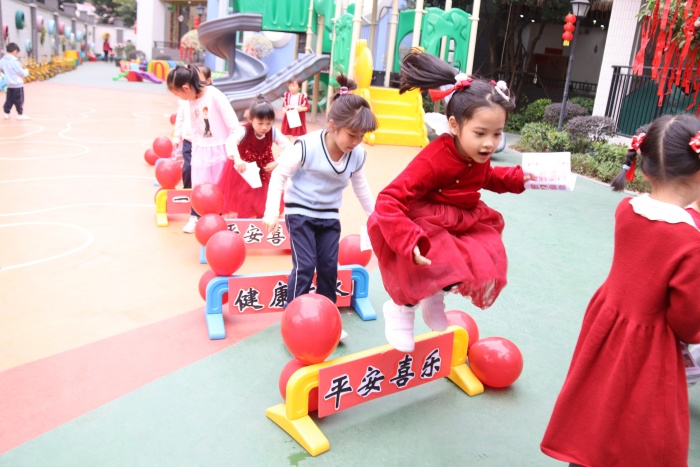 各學校精心設計豐富特色的開學活動讓同學們在滿滿的儀式感中迎接新學期。在幼兒園里,教師為孩子們布置了有趣、溫馨入園打卡點,家長和孩子們紛紛合照打卡,一張張可愛的笑臉讓幼兒園充滿了生機和希望?!懊ず胁虏聵?,好運轉轉轉”、“粘粘好寓頭,摸摸好福氣”等創(chuàng)意滿滿的親子游戲,讓孩子們從入園就感受濃濃的開學氣氛。