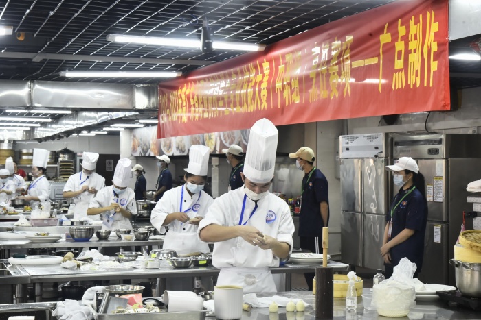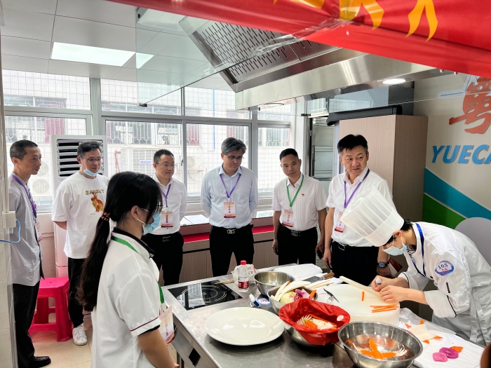 為保障大賽的順利舉行,市現(xiàn)代職業(yè)技術(shù)學(xué)校高度重視,會(huì)同上級(jí)主管部門、企業(yè)、行業(yè)專家多次召開(kāi)工作推進(jìn)會(huì)。學(xué)校共組織培訓(xùn)學(xué)生志愿者180余名,教師志愿者90余名,確保各個(gè)環(huán)節(jié)的服務(wù)工作全覆蓋、高質(zhì)量,為參賽選手提供1對(duì)1服務(wù)。賽場(chǎng)開(kāi)展現(xiàn)場(chǎng)網(wǎng)絡(luò)直播,營(yíng)造“公平、公正、公開(kāi)”的競(jìng)賽氛圍,同時(shí)弘揚(yáng)了粵菜文化。比賽期間,廣東省教育廳大賽辦覃忠健與大賽督察梁海波巡視賽場(chǎng)比賽情況,充分肯定學(xué)校的協(xié)辦工作。