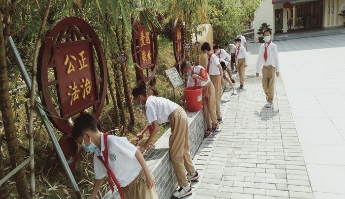 習(xí)近平總書記在全國教育大會(huì)上指出,教育要“培養(yǎng)德智體美勞全面發(fā)展的社會(huì)主義建設(shè)者和接班人”,“要引導(dǎo)學(xué)生崇尚勞動(dòng)、尊重勞動(dòng),長大后能夠辛勤勞動(dòng)、誠實(shí)勞動(dòng)、創(chuàng)造性勞動(dòng)。”總書記的重要論述,高揚(yáng)勞動(dòng)教育的鮮明旗幟,體現(xiàn)了黨和國家教育方針的新要求,具有十分重要的現(xiàn)實(shí)意義和深遠(yuǎn)的歷史意義。為落實(shí)總書記的要求,培養(yǎng)學(xué)生熱愛勞動(dòng)的習(xí)慣和吃苦耐勞的精神,增強(qiáng)愛護(hù)校園的意識(shí),4月11日下午,火炬八小全體班主任在學(xué)生服務(wù)室的指導(dǎo)下,利用班會(huì)課時(shí)間開展“勞動(dòng)光榮 美化校園”活動(dòng),與學(xué)生共同清理、美化校園。