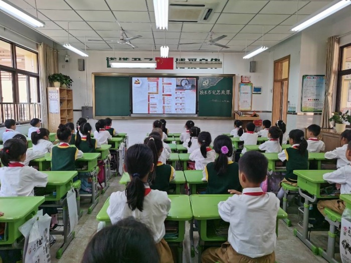 唐校長首先從召開時間、召開地點、參會人員、主要議程、三個需要、四方面?zhèn)ゴ蟪删?、四方面改變等內容系統(tǒng)介紹了中國共產(chǎn)黨第十九屆六中全會的召開情況,緊接著重點為同學們講解了《中共中央關于黨的百年奮斗重大成就和歷史經(jīng)驗的決定》精神要點。他充分運用多媒體課件,結合圖片,重點講解了黨的百年奮斗重大成就和歷史經(jīng)驗的“三個需要”、中國共產(chǎn)黨成立至今的四個偉大飛躍,馬克思主義中國化的三次飛躍。各班教室里全體同學都在專心致志的聆聽唐校長的思政課,他們若有所思,仿佛在思考著長大后如何更好的學本領、建設祖國......