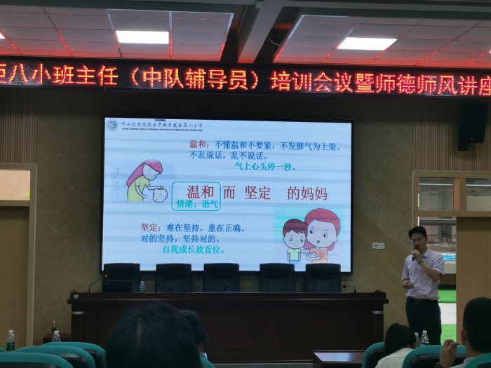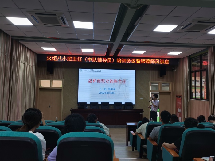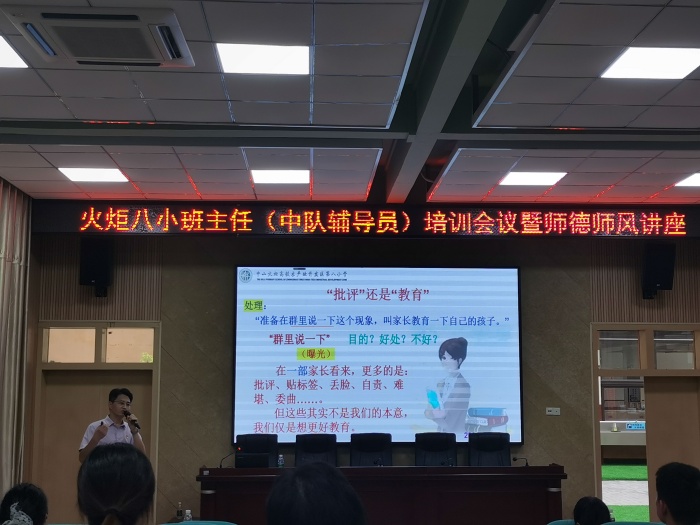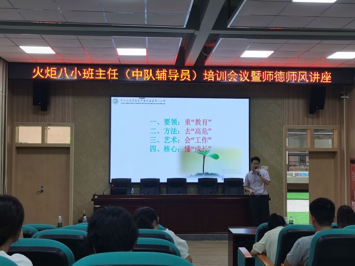 “師也者,教之以事而喻諸德也”,為加強(qiáng)班主任隊(duì)伍建設(shè),落實(shí)立德樹人根本任務(wù),建立良好的家校關(guān)系,家校共育,共促學(xué)生成長,火炬八小于8月28日下午在報(bào)告廳開展德育專題講座暨班主任(中隊(duì)輔導(dǎo)員)培訓(xùn)會議。本次會議由學(xué)生服務(wù)室鄧龍主任主持,特邀請了中山市優(yōu)秀德育干部、中山市班主任專業(yè)發(fā)展研究中心成員、中山市家校共育研究中心講師團(tuán)副團(tuán)長、火炬區(qū)第四小學(xué)楊勇強(qiáng)副校長為全體班主任和新教師開展講座。